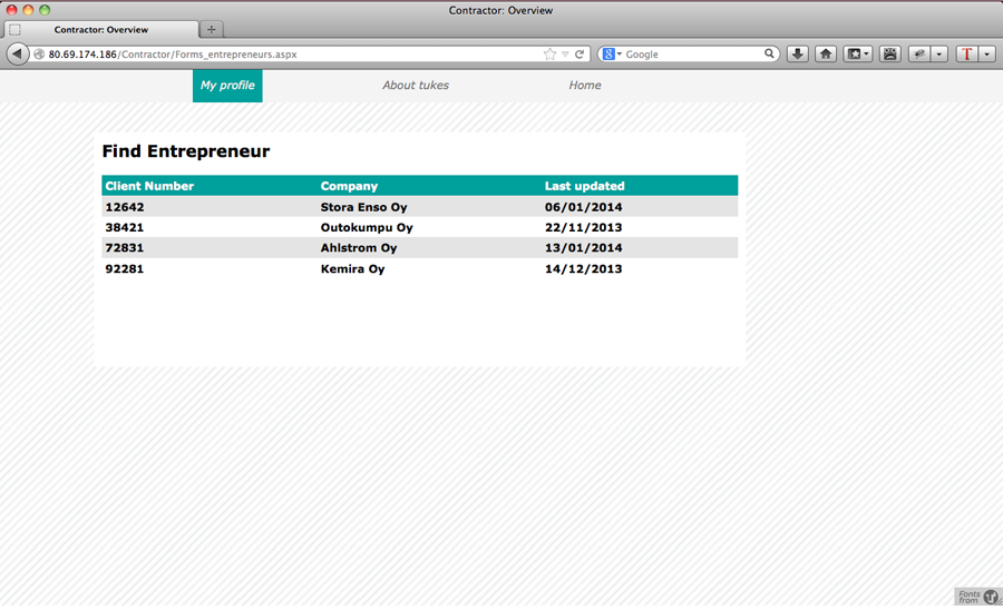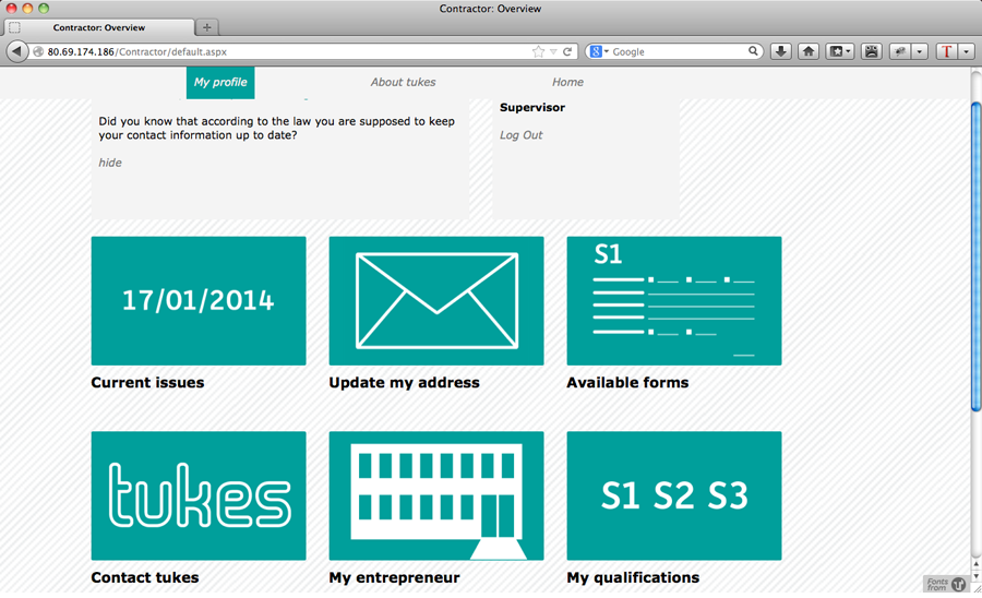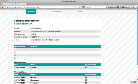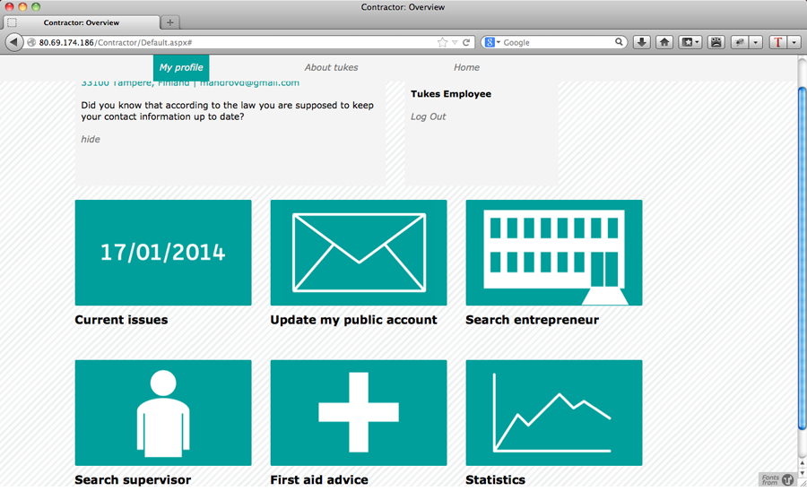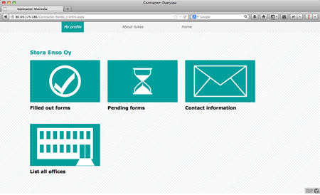 Während meiner Zeit in Finnland arbeitete ich hauptsächlich an einem Projekt für die finnische Behörde für Sicherheit und Chemikalien, »Tukes«. Ein Teilbereich dieser Behörde, der sich mit sicherheitsrelevanten Aspekten für Elektriker beschäftigt, wollte von unserem Team eine Lösung für die Fragestellung, wie zum einen Anmeldungsformulare Online ausfüllbar zur Verfügung gestellt und zum anderen der Kontakt zwischen Elektrikern und Behörde erleichtert werden kann. Bisher wurden alle Formulare per Hand ausgefüllt, was dazu führte, dass drei Sekretärinnen ihrer eigentlichen Arbeit kaum nachgehen konnten und hauptsächlich mit dem Abtippen der Formulare beschäftigt waren. Es ging der Behörde deshalb auch darum, ihren Angestellten zufriedenstellende, interessante Aufgaben anzubieten und ihnen dafür auch mehr Zeit zu verschaffen.